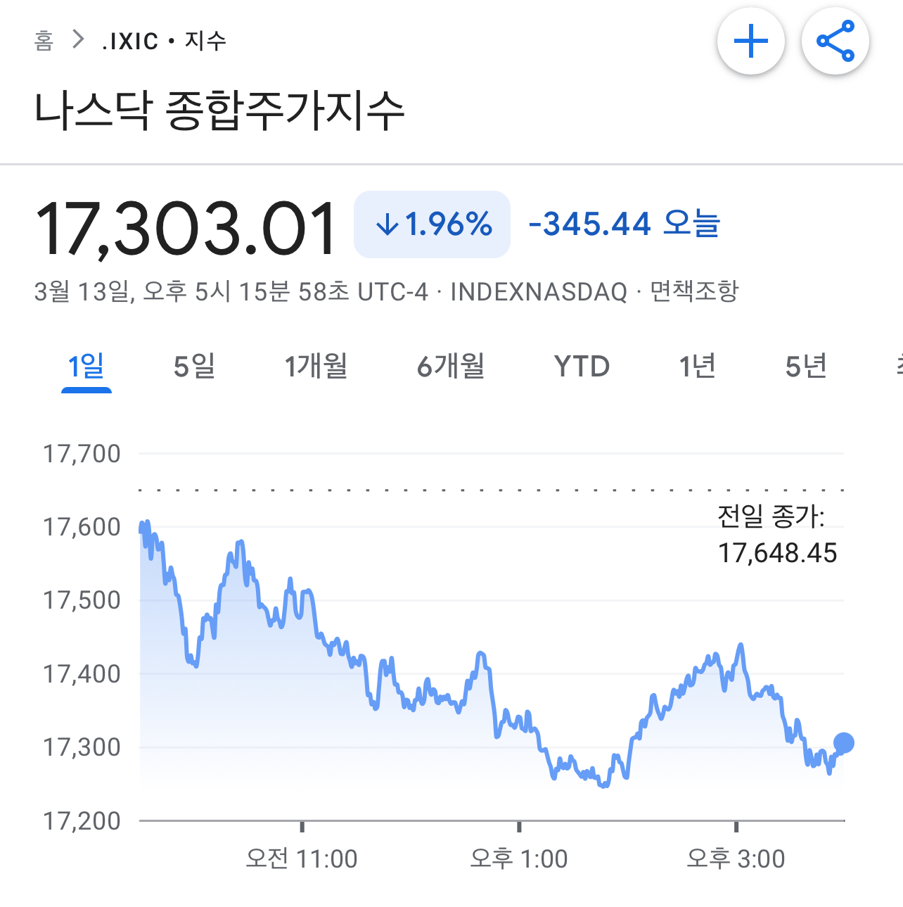 • 나스닥 종합지수: 2% 하락하여 17,303.01로 마감했습니다.